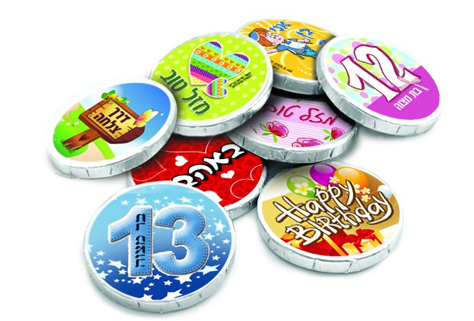 מטבעות שוקולד עם הדפסה אישית - כשר בד"ץ פרווה/חלבי (מחיר מדורג לפי כמות בפנים)