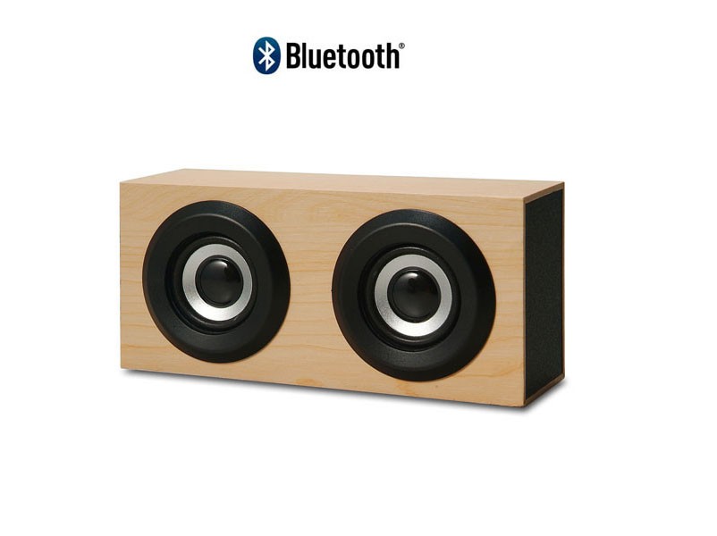 רמקול בלוטוס סטריאופוני נטען בגימור עץ עם טווח קליטה של 10 מטר