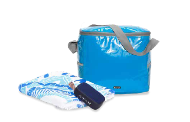 ערכה הכוללת: צידנית, מגבת חוף ענקית ורמקול בלוטוס נייד