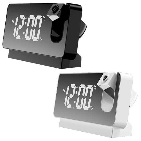 שעון דיגיטלי ספרות לד לבנות עם מקרן לקיר (טעינת USB)