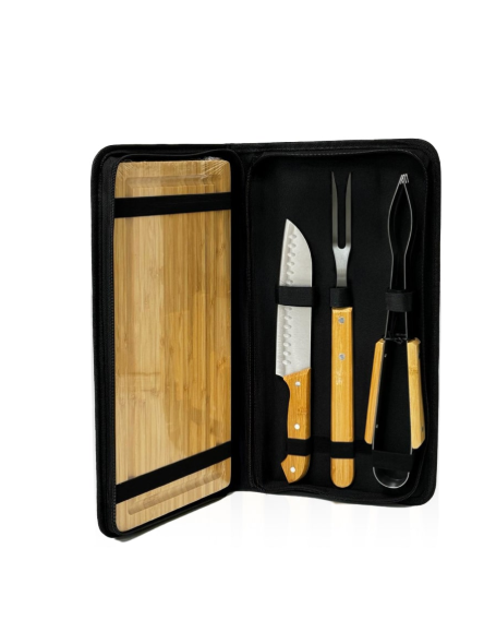 הכולל 4 חלקים עשויים פלדת אל חלד בשילוב עץ במבו